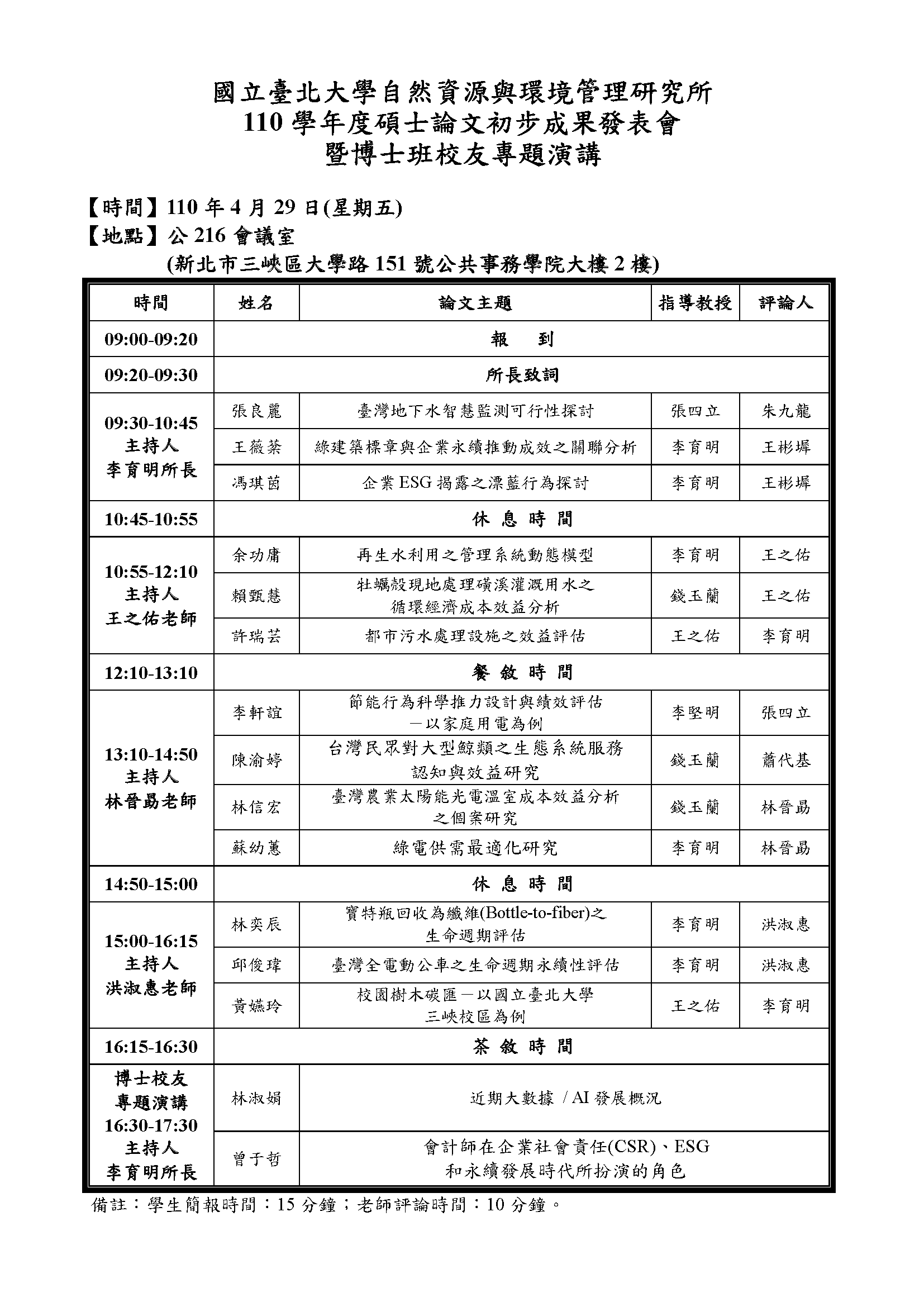 112學年度碩士論文初步成果發表會 (113.04.20 星期六 三峽校區)