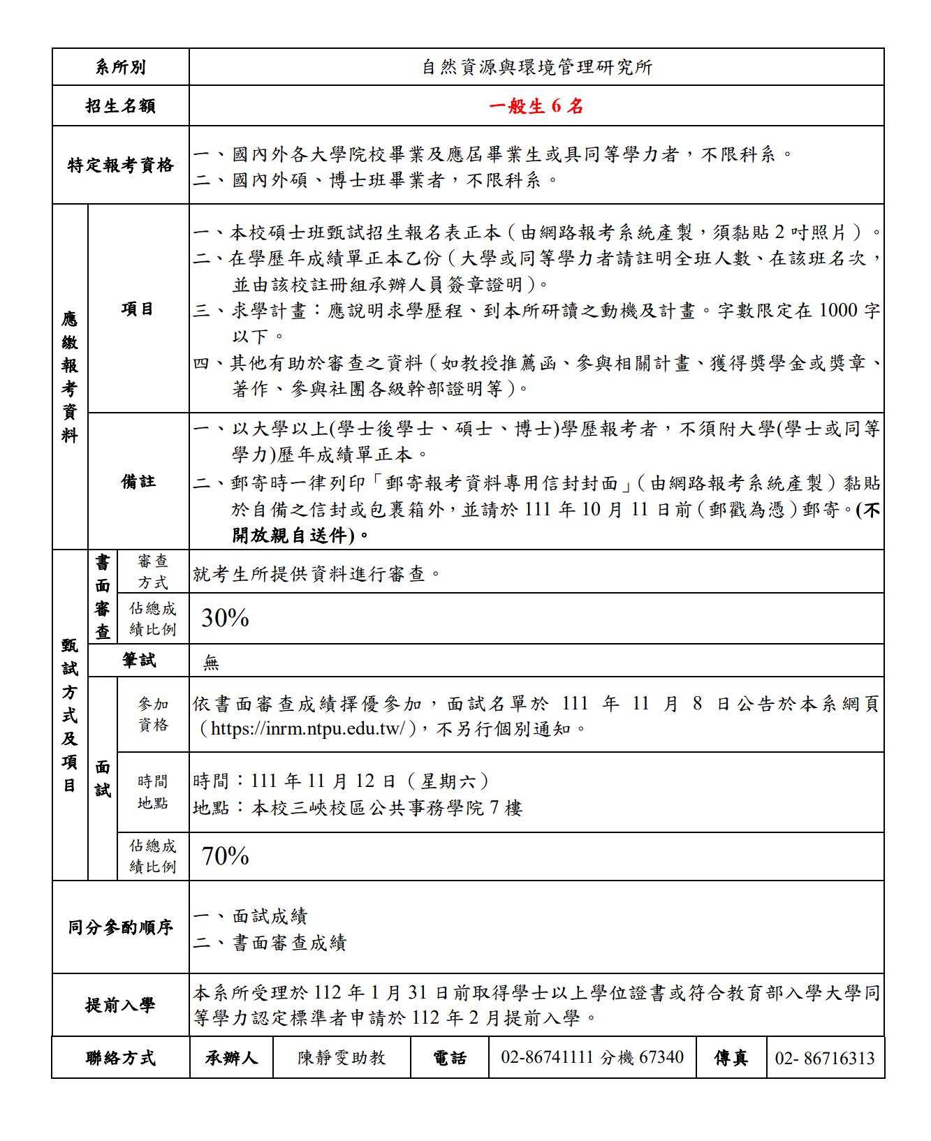 114學年度碩士在職專班招生面試公告(在職生面試日期:114/2/15)